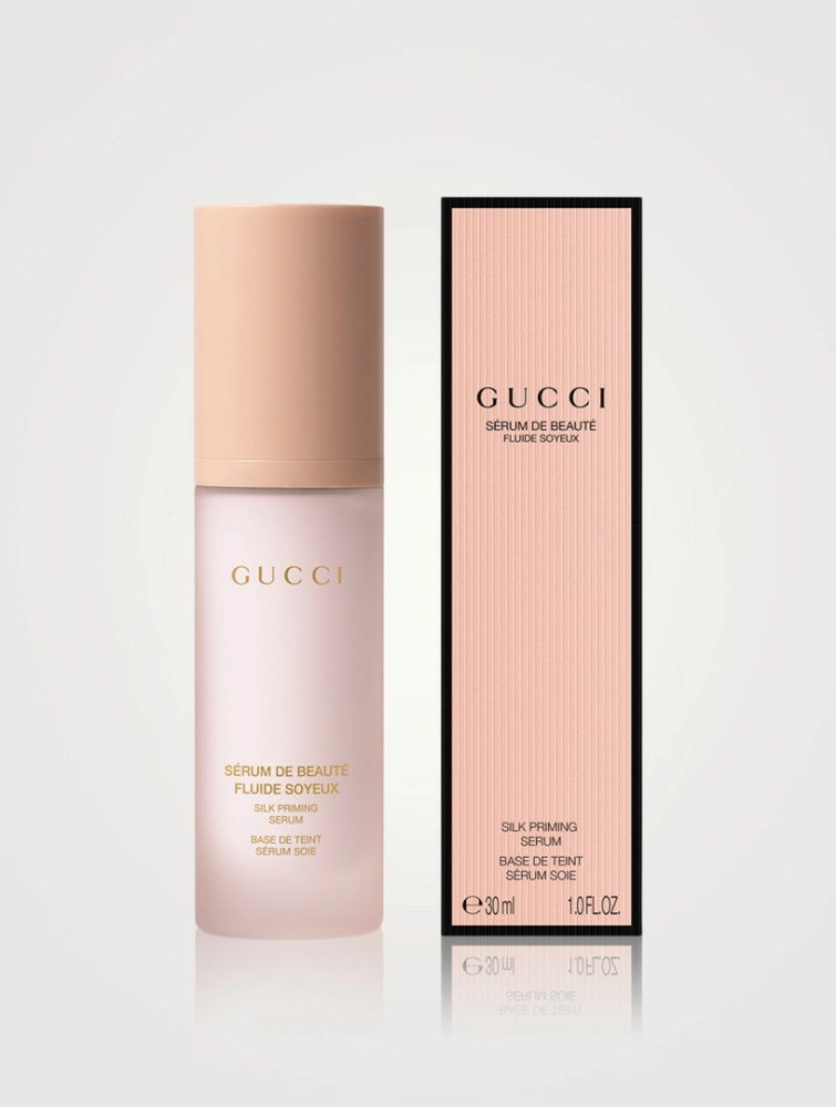 "سيروم دي بوتي فلويد سوايو" متوفر بتركيبة واحدة عامة، ويأتي في أنبوب زجاجي ثقيل باللون الوردي الثلجي، مع غطاء باللون الوردي الشاحب ومطبوع على الأنبوب حروف كلمة Gucci بلون ذهبي.