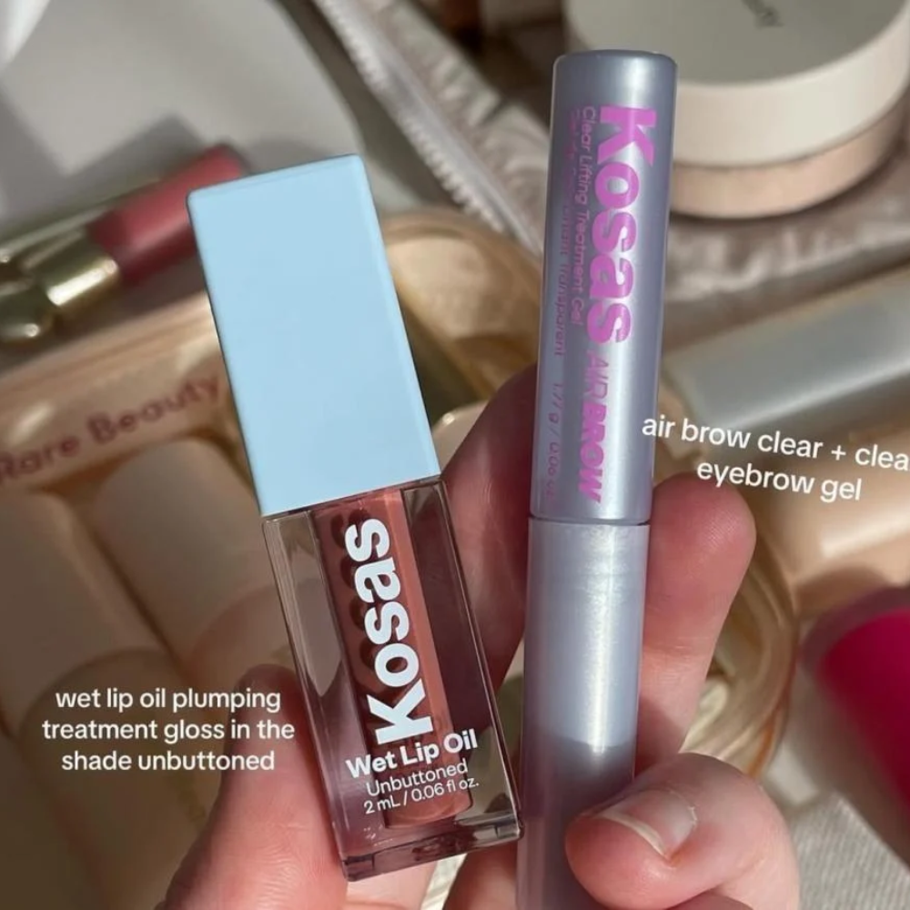 كوساس مجموعة شفاه وحواجب - ملمع شفاه مبلل ومكثف، علاج هجين للشفاه وملمع غني بحمض الهيالورونيك والببتيدات لترطيب الشفاه وزيادة امتلائها بشكل ملحوظ، دون الشعور بأي لسعة، بلون أحمر خدود ناعم ودافئ الأكثر مبيعًا. 0.06 أونصة / 2 مل - جل إير براو الشفاف + النظيف لرفع الحواجب مع تأثير التصفيح: جل حواجب شفاف معزز بمكونات فعالة للعناية بالشعر، يرفع الحواجب ويثبتها في مكانها، ويدعم مظهرًا أكثر امتلاءً وصحة. 0.06 أونصة / 1.77 غرام