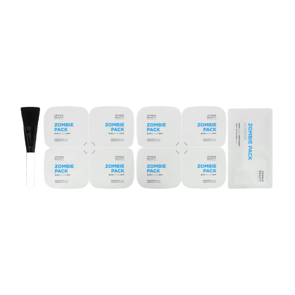 \مجموعة زومبي باك اند أكتيفيتور من سكين1004 هي مجموعة أقنعة للوجه مصممة لتنظيف البشرة بعمق وشدها وتقليل ظهور المسام. تحتوي المجموعة على 8 عبوات من مسحوق القناع و 8 عبوات من المحلول المنشط، بالإضافة إلى فرشاة لوضع القناع.
