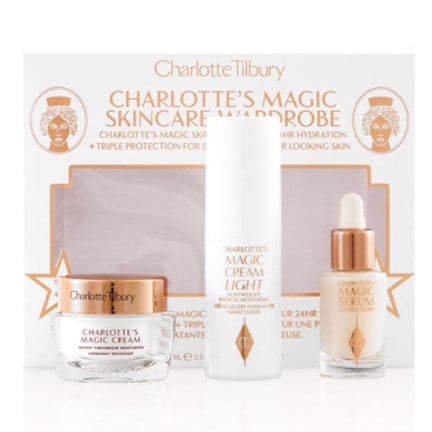 هذا هو الروتين السحري الخاص بي لترطيب البشرة لمدة 24 ساعة وحماية ثلاثية للحصول على بشرة أكثر إشراقًا ونضارة، ومعبأة بشكل مثالي في مجموعة هدايا صغيرة للعناية بالبشرة! تتميز بـ 3 أيقونات بحجم السفر،مجموعة ماجيك وردروب للعناية بالبشرة هي مجموعة هدايا مثالية للعناية بالبشرة للخبراء في العالم وسائقي النفاثات، ومحبي الجمال الذين يتنقلون دائمًا أو مبتدئي العناية بالبشرة الرائعين الذين يرغبون في اكتشاف سحر أسرار العناية بالبشرة! تتضمن مجموعة العناية بالبشرة هذه: