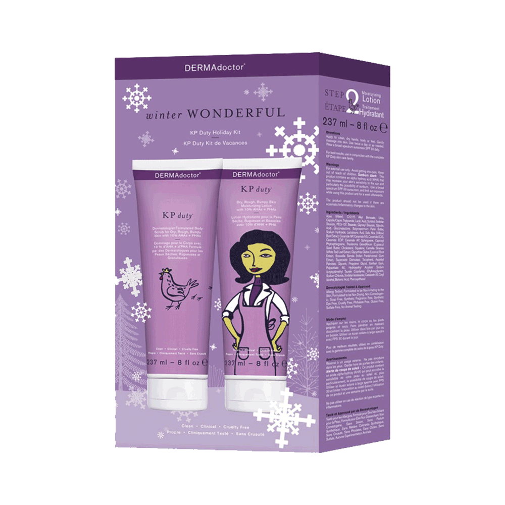 قدمت د. أودري منتجات (ديرما دكتور) التي تعرف بفعاليتها في علاج مشاكل البشرة. نضع بين يديك مجموعة كي بي ديوتي المشهورة عالميًا, وهي المجموعة الفعالة لعلاج مشاكل البشرة مثل جلد الدجاج. تحتوي المجموعة على: لوشن ديرما دكتور كب بي ديوتي المرطب للبشرة الجافة والخشنة والمليئة بالنتوءات من ديرماكتور، إتش إيه أو بي إتش إيه إس 10%، 8 اونصة. مقشر الجسم ديرما دكتور كب بي ديوتي لعلاج تقرن الجريبات الشعرية والبشرة الجافة والخشنة والمليئة بالنتوءات بنسبة 10% من أحماض ألفا هيدروكسي (PHA), 8 اونصة. كيفية الاستخدام: المقشر : ضع كمية صغيرة من المقشرعلى البشرة الجافة. قم بالتدليك برفق بأطراف الأصابع. اشطف واترك البشرة حتى تجف. يستخدم مرة أو مرتين في الأسبوع حسب قدرة البشرة على التحمل (لا ينصح باستخدامه على الوجه) استخدم يوميًا واقي الشمس بعامل حماية 30. اللوشن: ضع اللوشن على اليدين أو الجسم أو القدمين النظيفة والجافة. دلك البشرة برفق. يستخدم مرتين في اليوم أو حسب الحاجة. استخدم يوميًا واقي الشمس بعامل حماية 30. ملاحظة: المنتج يناسب معظم أنواع البشرة ( لا ينصح به للبشرة شديدة الحساسية). تركيبة المنتجات خضعت لإختبارات أطباء الجلدية.