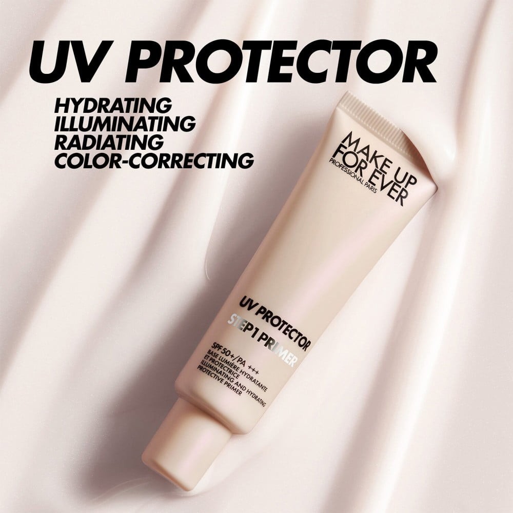 برايمر مُضيء للبشرة غني بزهرة الصبار التي تحمي البشرة من أشعة UVA/UVB. يحتوي برايمر ستيب 1 الواقي من الأشعة فوق البنفسجية على مُعامل حماية SPF 50+/PA +++ وخلاصة الورد، ويُرطب البشرة ويحميها لمدة 24 ساعة.